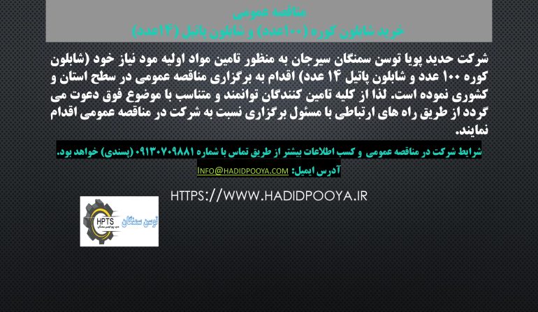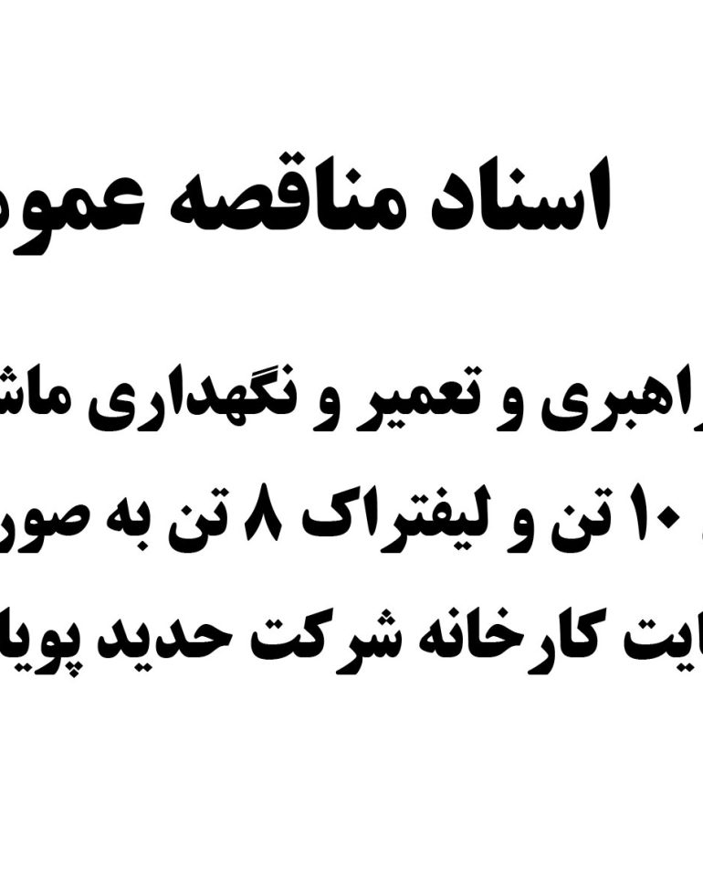 ۶ شهریور ۱۴۰۴ اسناد مناقصه عمومی تأمین، راهبری و تعمیر و نگهداری ماشین آلات سنگین)جرثقیل ۱۰ تن و لیفتراک ۸ تن به صورت ساعتی( موردنیاز سایت کارخانه شرکت حدید پویا توسن سمنگان مناقصات