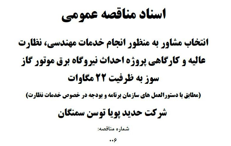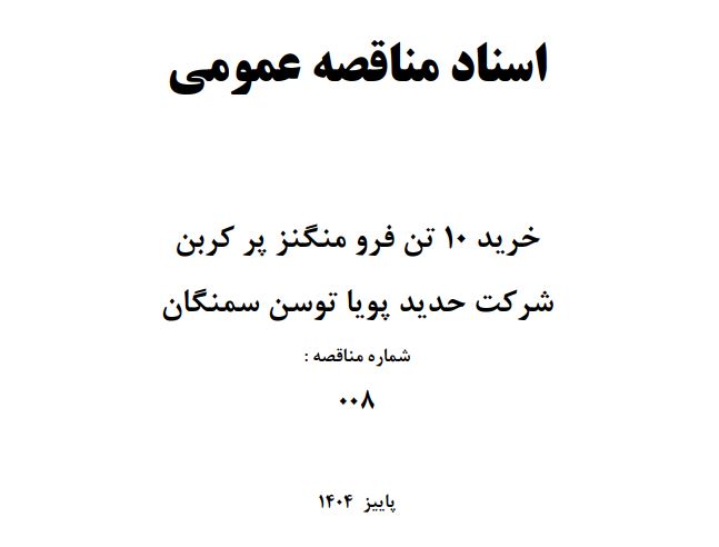 ۷ مهر ۱۴۰۴ اسناد مناقصه عمومی خرید تجهیزات، نصب، راه اندازی و تولید آزمایشی خط ریخته گری پیوسته تک رشته ای مناقصات