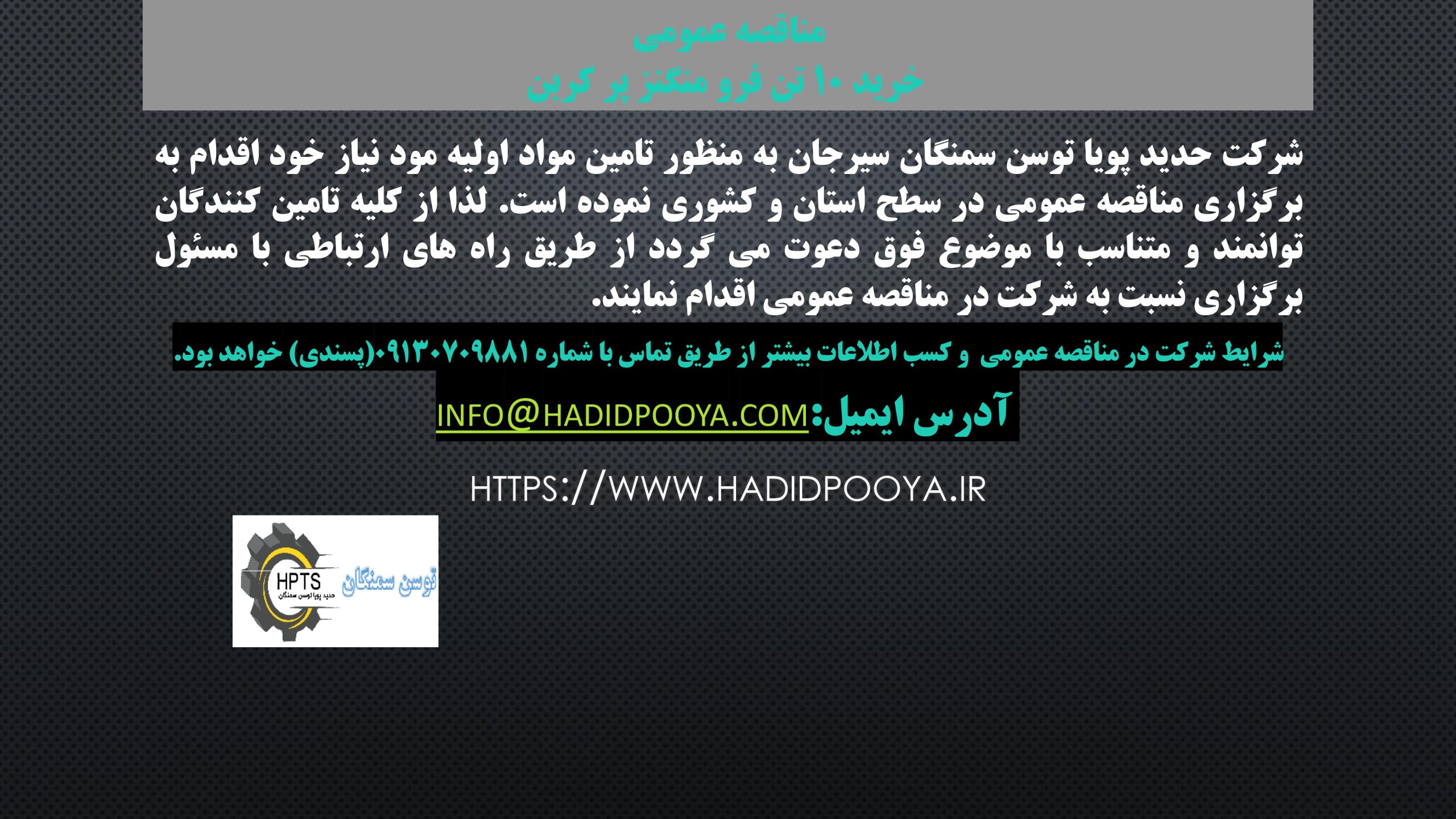 ۱۵ مهر, ۱۴۰۴۱۶ مهر, ۱۴۰۴ مناقصات۱۵ مهر, ۱۴۰۴۱۶ مهر, ۱۴۰۴توسطadminبدون نظر آگهی خرید ۱۰ تن منگنز پر کربن ادامه مطلب